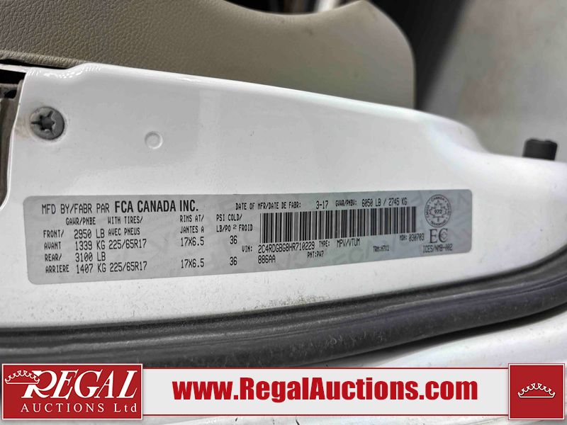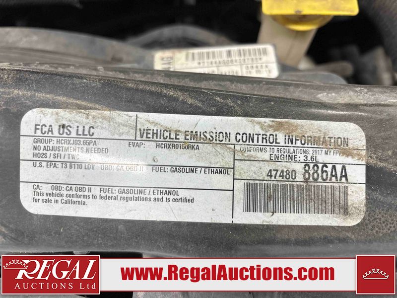 This 2017 DODGE GRAND CARAVAN 4D SPORTS VAN FWD is powered by a 3.6L V6 gasoline engine and an automatic transmission. The van has seats for 7 people. The van has high mileage for its age. The vehicle has high-value options including a DVD Player and a backup camera. The Check Engine light is on. The body looks to be in fair condition overall. There is some chrome peeling on the grille. There is some rust on the hood. There are scratches on the front bumper, left front door, rear bumper, and right front door. There are chips on the front bumper. The front bumper is broken. There is minimal rust on the left front fender and right rear fender. There is dent damage on the rear door. There are very minor chips in many areas around the body. There are very minor scratches in many areas around the body. There is very minor dent damage on the right front fender. The taillights are broken. The interior looks to be in good condition overall. The windshield is chipped. All of the tires are nearly bald and should be replaced. This van is being sold by an automotive broker. Regal Auctions Ltd. makes no guarantee or warranty, either express or implied, with respect to the data provided in this report. The information has been provided from the consignor and from sources generally believed to be reliable, however the accuracy of this information cannot be guaranteed by Regal Auctions.