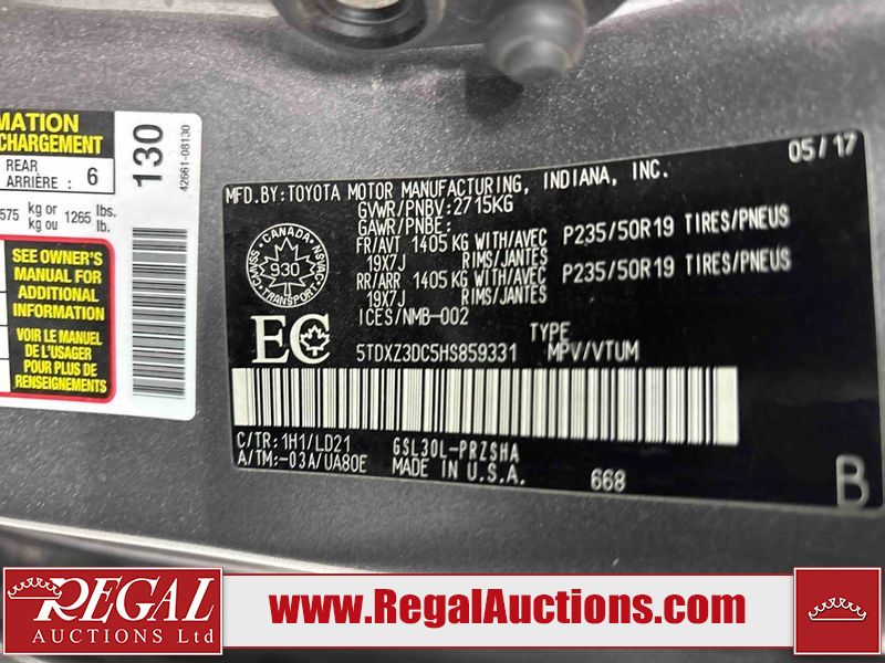 This 2017 TOYOTA SIENNA SE 4D VAN is powered by a 3.5L V6 gasoline engine and an automatic transmission. The van has seats for 8 people. The van has high mileage for its age. The vehicle has high-value options including power seats, heated seats, a DVD Player, navigation, and a backup camera. The vehicle has some mechanical problems. The engine is making abnormal noise. (See Footnote 1) The body looks to be in fair condition overall. The left front fender has been repainted poorly. There is pronounced paint peeling on the front bumper. There are incidental chips on the front bumper. There is dent damage on the right rear door. There are very minor scratches in many areas around the body. There are very minor chips in many areas around the body. There is very minor dent damage on the right front door. The interior looks to be in good condition overall. The windshield is cracked. All of the tires have lots of tread remaining. This van is being sold by an automotive broker. The vehicle will be sold with the following declarations: Claims Total $1000 - $2999 (See Footnote 2) and Mechanical Problems (See Footnote 1). Footnotes: 1) We've identified some mechanical problems with the vehicle. However, the vehicle has not undergone a mechanical inspection and our findings are not to be considered a complete evaluation of the vehicle's mechanical condition. Review our Buyer Protection Policy to see how Regal Auctions protects you from undisclosed mechanical problems. 2) The vehicle's total recorded insurance claims history is between $1,000 - $2,999. This is the amount of money that was paid out by an insurance company for repairs to cover claims against the vehicle's insurance policy. This information is provided by CarFax. Regal Auctions Ltd. makes no guarantee or warranty, either express or implied, with respect to the data provided in this report. The information has been provided from the consignor and from sources generally believed to be reliable, however the accuracy of this information cannot be guaranteed by Regal Auctions.
