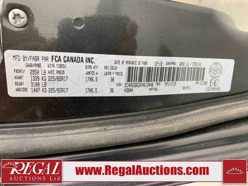 This 2019 DODGE GRAND CARAVAN cvp 4D VAN FWD 3.6L is powered by a 6 cylinder gasoline engine and an automatic transmission. The van has seats for 7 people. The van has high mileage for its age. The vehicle has high value options including power seats and a backup camera. The body looks to be in rough condition overall. The left front fender has been repainted poorly. The rear bumper is cracked. There are incidental chips on the front bumper, hood, roof, left front fender, left front door, left rear door, left rear fender, rear bumper, rear door, right rear fender, right rear door, right front door, and right front fender. There are incidental scratches on the front bumper, left front fender, left front door, left rear door, left rear fender, rear bumper, rear door, right rear fender, right rear door, right front door, and right front fender. There is paint peeling on the rear door. There are very minor chips on the grille. There are very minor scratches on the hood. There is very minor dent damage on the right rear door. The interior looks to be in fair condition overall. There are a fair amount of cigarette burns on the passenger seat. The carpet is dirty. The windshield is chipped. All of the tires have lots of tread remaining.