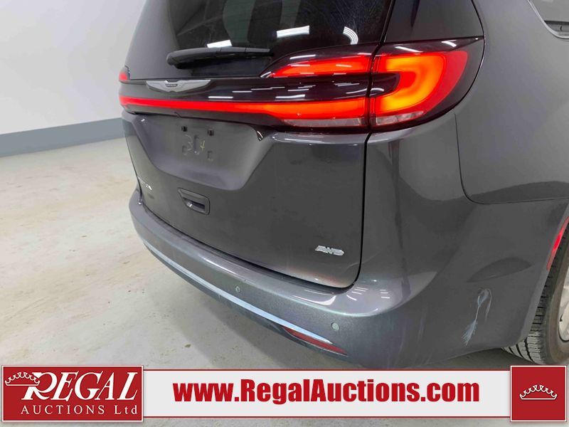 This 2022 CHRYSLER PACIFICA TOURING L 4D UTILITY AWD 3.6L is powered by a 6 cylinder gasoline engine and an automatic transmission. It is equipped with four wheel drive. The van has seats for 7 people. The van has low mileage for its age. The vehicle has high value options including leather upholstery, power seats, heated seats, navigation, and a backup camera. The body looks to be in fair condition overall. There are minor chips on the front bumper. There are incidental scratches on the front bumper, hood, roof, left rear door, left rear fender, rear bumper, and right front fender. There is minimal dent damage on the left rear fender. There are very minor chips in many areas around the body. There are very minor scratches in many areas around the body. The interior looks to be in fair condition overall. The dashboard, driver's seat, passenger seat, rear seats, and doors are dirty. The carpet is dirty. The windshield is chipped. All of the tires have lots of tread remaining.
