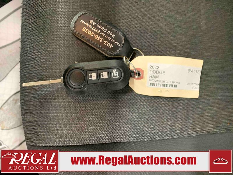 This 2022 DODGE RAM PROMASTER CITY 4D VAN is powered by a 2.4L 4-cylinder gasoline engine and an automatic transmission. The van has seats for 2 people. The van has high mileage for its age. The vehicle has high-value options including a backup camera. The body looks to be in good condition overall. There are chips on the front bumper, hood, and right front fender. There are scratches on the rear bumper and right rear door. There is very minor dent damage on the hood. There are very minor chips in a few areas around the body. There are very minor scratches in many areas around the body. The fog lights are broken. The interior looks to be in good condition overall. The windshield looks to be in good condition. All of the tires have lots of tread remaining. This van is being sold by the fleet department of a corporation or government body. The vehicle will be sold with the following declarations: Claims Total Above $20,000 (See Footnote 1) and Fleet Vehicle (See Footnote 2). Footnotes: 1) The vehicle's total recorded insurance claims history is above $20,000. This is the amount of money that was paid out by an insurance company for repairs to cover claims against the vehicle's insurance policy. This information is provided by CarFax. 2) This vehicle is a commercially owned work vehicle. Regal Auctions Ltd. makes no guarantee or warranty, either express or implied, with respect to the data provided in this report. The information has been provided from the consignor and from sources generally believed to be reliable, however the accuracy of this information cannot be guaranteed by Regal Auctions.